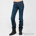Стильные классические темно-синие джинсы. Плотная ткань, пять карманов. Прямой силуэт джинс, застежка на молнию и пуговицу, оригинальная отстрочки и кокетка сзади.