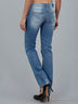Джинсы прямого кроя с эффектом потертости. Накладные и втачные карманы. Застежка на молнию и пуговицу.