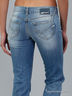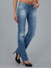 Джинсы прямого кроя с эффектом потертости. Накладные и втачные карманы. Застежка на молнию и пуговицу.