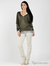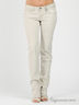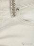 Детали: отрезной пояс со шлевками для ремня, застежка на пуговицу и молнию, два прорезных кармана спереди, два накладных сзади, модель декорирована стразами.