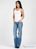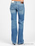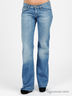 Классические джинсы расклешенного кроя. Выполнены из потертого денима средней плотности. Отрезной пояс со шлевками для ремня. Треугольная кокетка. Застежка на молнию и пуговицу. 5 карманов. Прекрасный вариант для офиса и прогулок!