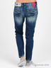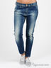 Стильные укороченные джинсы слегка зауженного кроя. Выполнены из потертого денима средней плотности. Отрезной пояс со шлевками для ремня. Застежка на молнию и пуговицу. Спереди 2 втачных кармана, сзади 2 накладных кармана на клапане и кнопке. Прекрасный вариант для прогулок!