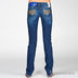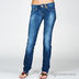 Стильный джинсы прямого покроя, темно-синий деним. Декоративные элементы на задних карманах - золотистые клепки.