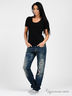 Модные джинсы прямого кроя. Выполнены из плотного денима с потертостями. Отрезной пояс со шлевками для ремня. Треугольная кокетка. Застежка на пуговицы. 5 карманов. Отлично сочетаются с любыми по фасону и стилю вещами!