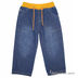 Джинсы на подкладке, на регулируемом трикотажном поясе из рибаны. Классического синего цвета, имеют прямой силуэт. Украшены небольшим шевроном. Универсальная модель, которая идеально подойдет для прогулок и отдыха.