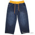 Джинсы на подкладке, на регулируемом трикотажном поясе из рибаны. Классического синего цвета, имеют прямой силуэт. Украшены небольшим шевроном. Универсальная модель, которая идеально подойдет для прогулок и отдыха.