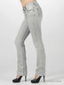Детали: отрезной пояс со шлевками; классический крой с пятью карманами; застегиваются на молнию и пуговицу