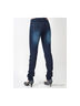 Детали: отрезной пояс со шлевками; застегиваются на молнию и пуговицу; пять карманов; эффект потертости
