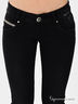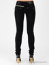 Детали: отрезной пояс со шлевками; три кармана; застегиваются на молнию и пуговицу; декорированы стразами