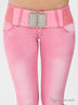 Детали: широкий отрезной пояс со шлевками; пять карманов; застегиваются на молнию и три пуговицы; в комплекте пояс-резинка с металлической пряжкой