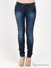 Стильные джинсы из плотного хлопкового денима. Отрезной пояс со шлевками для ремня. Застежка на пуговицу и молнию. Спереди два прорезных кармана, сзади - два накладных. Сзади оригинально выполненный хлястик. Длинные зауженные брючины. Джинсы декорированы потертостями.