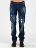 Модные джинсы прямого кроя из плотного денима. Застежка на молнию и пуговицу. Отрезной пояс со шлевками. Три передних кармана, два задних кармана. Эффект потертости. Отлично будут сочетаться с различными по фасону и фактуре вещами.