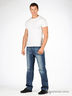 Классические мужские джинсы прямого покроя. Застежка на металлические пуговицы. К поясу пришиты шлевки для ремня. Спереди два втачных, сзади два накладных кармана. Джинсы декорированы контрастной прострочкой и потертостями. В изделии будет комфортно за счет свойств, которыми обладает хлопковая ткань: мягкость, хорошая поглощающая способность в теплое время. Также преимуществом хлопка является его натуральность и гипоаллергенность, а это значит, что вещи, изготовленные из хлопка, не навредят Вашему здоровью.