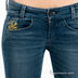 Джинсы женские стрейч. Классический крой с пятью карманами. На поясе шлевки для ремня. Застежка на молнии и пуговице. Декоративные складки и стильный эффект потертости.