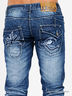 Детали: втачной пояс и шлевки для ремня, пять карманов, оригинальный крой, брючины зауженны, низка посадка, вышивка по хлопку