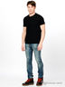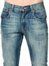Детали: застежка на молнию и пуговицу, к поясу пришиты шлевки, три передних кармана, два задних кармана, вышивка на заднем кармане, эффект потертости