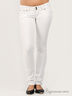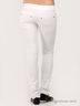 Детали: отрезной пояс со шлевками для ремня, застежка на пуговицы и молнию, два прорезных кармана спереди, два накладных сзади, зауженные к низу брючины.