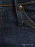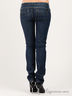 Детали: отрезной пояс со шлевками для ремня, застежка на пуговицу и молнию, два прорезных кармана спереди, два прорезных сзади, прямые брючины, модель с контрастными швами.