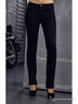 Джинсы зауженного к низу кроя с отделкой клепками. Застежка на молнию и пуговицы.