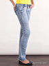 Джинсы зауженного кроя с эффектом потертости и рельефными швами. Накладные и втачные карманы. Застежка на молнию и пуговицу. Отличный вариант для повседневного использования.