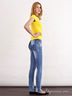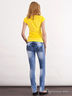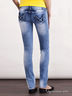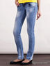 Оригинальные джинсы с эффектом потертости и хлястиками сзади для имитации карманов.
