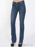 Джинсы прямого кроя с потертым эффектом. Застежка на молнию и пуговицу.