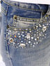 Джинсы прямого покроя с эффектной отделкой стразами на кармане спереди и сзади. Модель с застежкой на молнию дополнена шлевками для ремня. Идеальный вариант для женщин, которые стремятся к созданию современного образа.