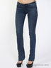 Джинсы зауженного к низу покроя с вышивкой на задних накладных карманах и эффектом потертости. Застежка на молнию и пуговицу.