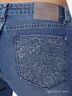 Джинсы прямого кроя с 5-ю карманами. Вышивка по всей поверхности накладных задних карманах и нашивка с брендом сзади. Застежка на молнию и пуговицу.
