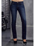 Джинсы прямого покроя с вышивкой на задних накладных карманах и эффектом потертости. Застежка на молнию и пуговицу.