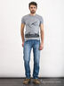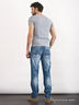 Классические мужские джинсы из хлопкового денима. Отрезной пояс со шлевками для ремня. Застежка на пуговицу и молнию. Спереди два прорезных кармана и один накладной, сзади два накладных кармана. Длинные слегка зауженные брючины. Джинсы декорированы потертостями.