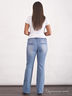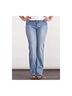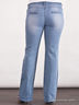 Детали: отрезной пояс со шлевками для ремня, два прорезных кармана спереди, два прорезных в рамках сзади, расклешенные брючины.
