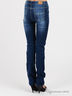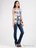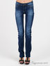 Детали: отрезной пояс со шлевками для ремня, два прорезных, два накладных кармана сзади, застежка на пуговицу и молнию, прямые брючины.