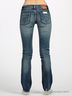 Классические пятикарманные джинсы с потертостями. Застегиваются на молнию и пуговицу. Треугольная кокетка. Украшены контрастной прострочкой.