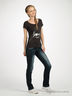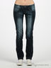 Пятикарманные джинсы прямого покроя. Небольшая треугольная кокетка. Застегиваются на молнию и пуговицу.