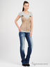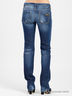 Модные джинсы с застежкой на молнию и пуговицу. На поясе предусмотрены шлевки для ремня. По бокам удобные втачные карманы, сзади накладные карманы. Изделие украшено контрастной прострочкой, тертым эффектом. Практичный вариант на каждый день.
