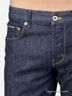 Джинсы прямого покроя с эффектом потертости. Застежка на молнию и пуговицу. Спереди два втачных кармана, сзади два накладных.