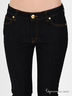 Стильные джинсы прямого кроя из денима. Застежка на молнию и пуговицу. Отрезной пояс со шлевками. Три передних кармана, два задних кармана. Задний карман украшен стразами. Отлично сочетаются с разными по фасону и фактуре вещами.