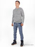 Оригинальные джинсы зауженного кроя. Выполнены из приятного на ощупь трикотажа. Отрезной пояс со шлевками, треугольная кокетка, застегиваются на пуговицы, 5 карманов.