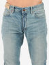 Детали: отрезной пояс со шлевками, треугольная кокетка, застегивается на молнию и пуговицу, 5 карманов