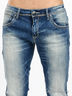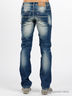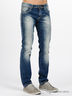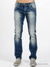 Мужские джинсы прямого покроя с эффектом потертости. Отрезной пояс. Есть шлевки для ремня. Застегивается на молнию и пуговицу. Пять карманов.