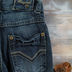 Оригинальные джинсы для мальчика. На молнии. Два врезных кармана. Сзади два накладных кармана. На обоих брючинах модные потертости.