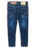 Джинсы прямого кроя с застежкой на молнию и пуговицу. По бокам карманы.