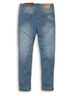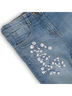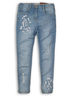 Джинсы прямого кроя для девочки. Модель с застежкой на молнию и пуговицу. По бокам карманы. Джинсы декорированы вышивкой.