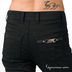 Стильные джинсы черного цвета прямого кроя, джинсы имеют пять карманов.