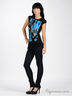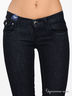Джинсы расклешенного книзу кроя. Спереди 2 втачных, сзади 2 накладных кармана. Отрезной пояс со шлевками. Застежка - молния и пуговица.