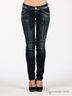 Стильные джинсы, зауженные к низу. Джинсы имеют пять карманов и искусственные потертости.
