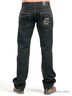 Мужские джинсы прямые черного цвета. Классический покрой с пятью карманами. Застежка на молнии и пуговице. Декоративная прострочка контрастного белого цвета.