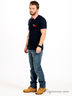 Детали: отрезной пояс со шлевками; пять карманов; застегивается на пуговицы; на заднем кармане оригинальная вышивка