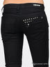 Низкая линия талии. Задний карман декорирован рядом металлических клепок.